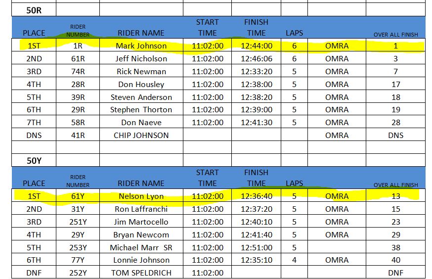 1st 50 Expert / 1st OMRA 50 Expert